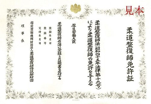 施術者は、国家資格である柔道整復師の資格を持っておりますので、安心して施術を受けていただくことができます。