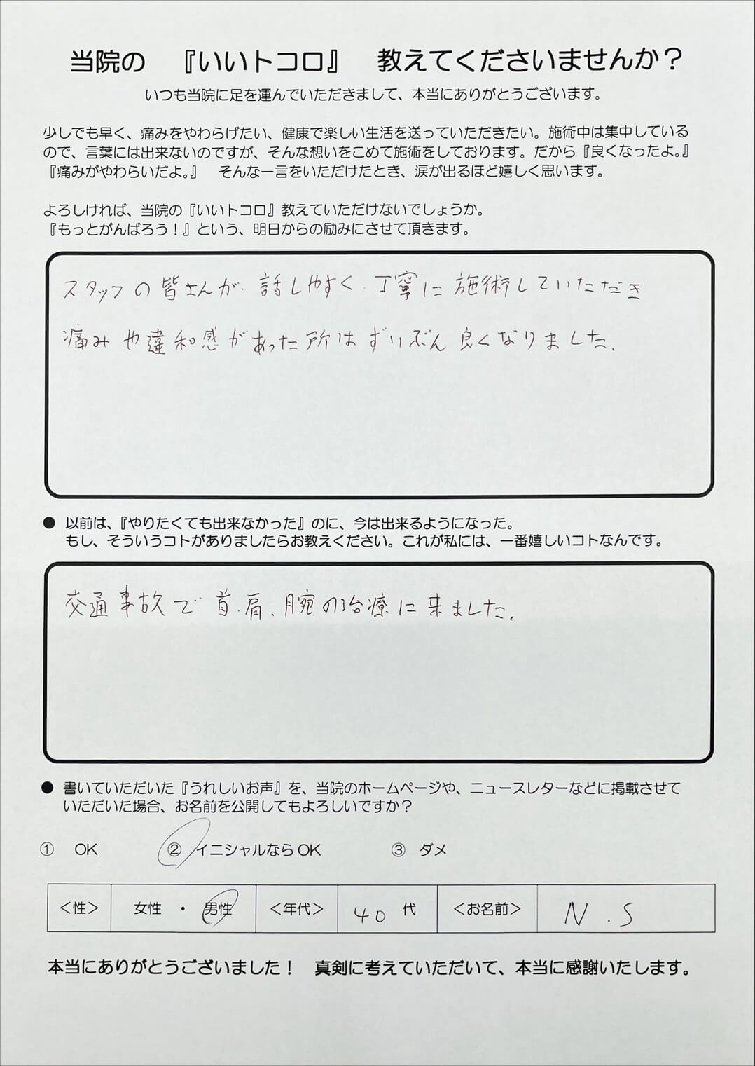 交通事故の施術に関する様々な知識を持っている自負がございます。